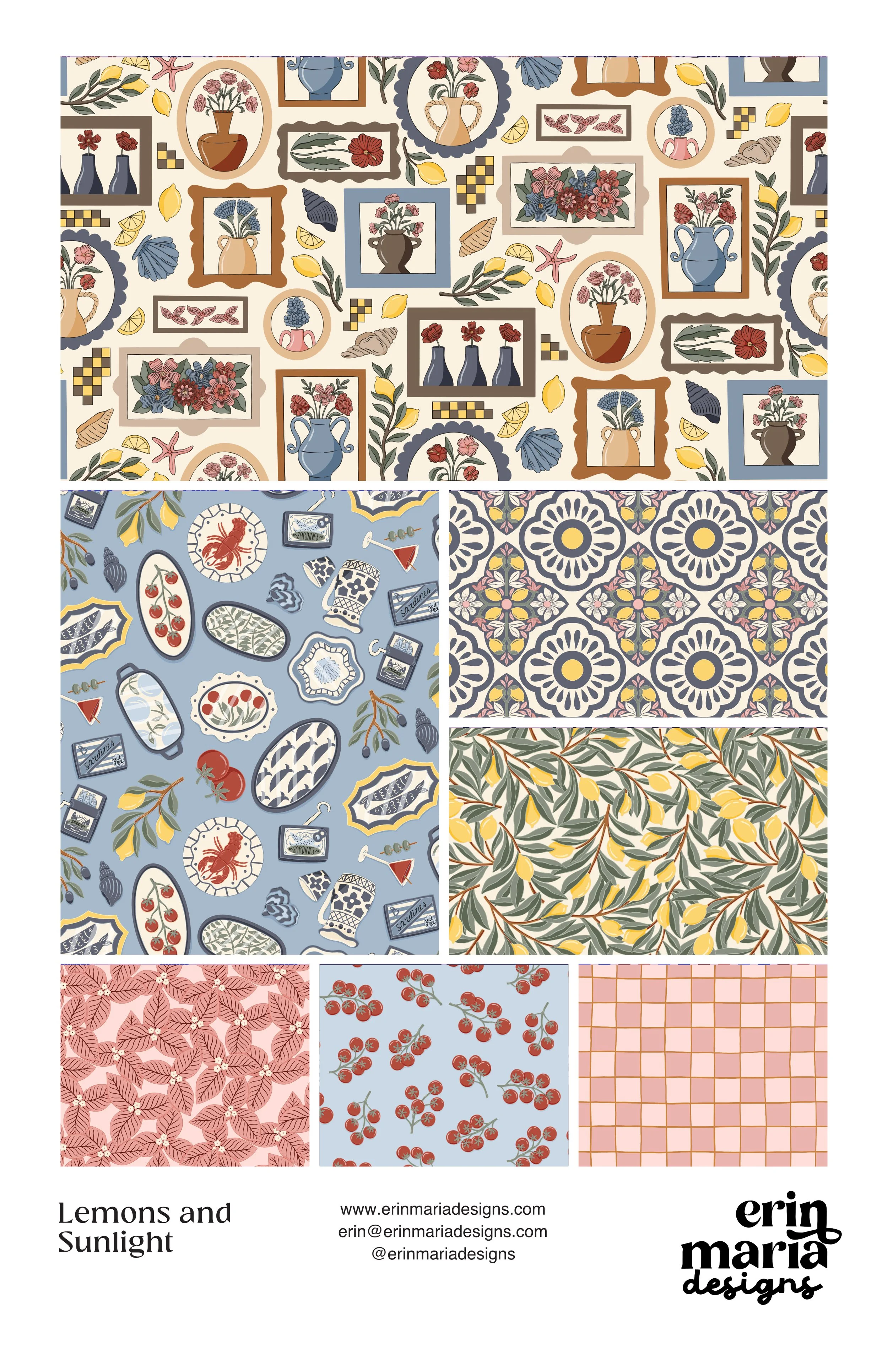 Perfect for fabric, wallpaper, and home decor, these patterns are ideal for home decorators, DIY sewists and makers, interior stylists, and brands looking to license seamless patterns for textiles, gift wrap, bedding, table linens or stationary.